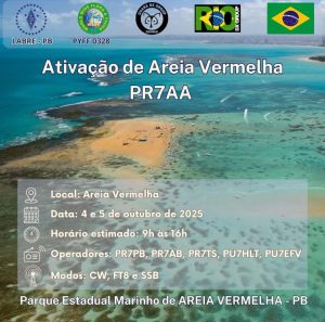 Nos dias 4 e 5 de outubro de 2025, a LABRE-PB, por meio da equipe PR7AA, realizou com êxito a ativação do Parque Estadual Marinho de Areia Vermelha (PYFF-0328), dentro do programa WWFF – World Wide Flora & Fauna, que incentiva a operação radioamadora em áreas naturais protegidas, promovendo a conscientização ambiental e o espírito de camaradagem entre os operadores.